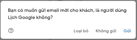 - Bước 4: Bấm Lưu sẽ hiện cửa sổ thống báo, chọn Gửi hệ thống sẽ gửi email đến người được mời tham gia họp