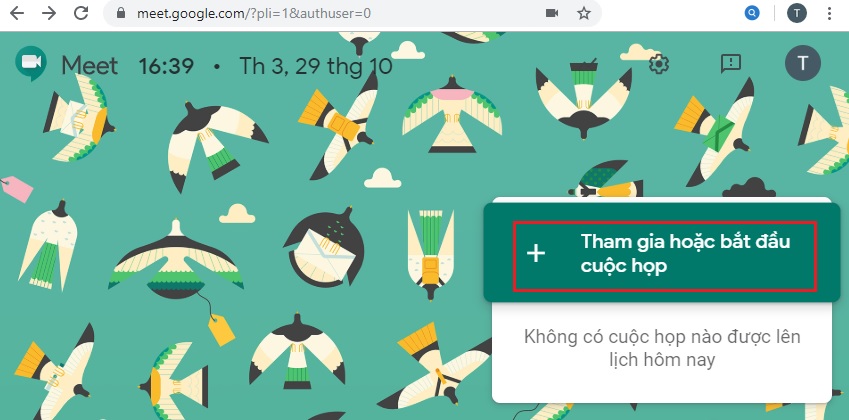 - Tạo phòng họp trực tiếp trên Hangouts Meet: Cách này giúp bạn tạo phòng họp 1 cách nhanh chóng
