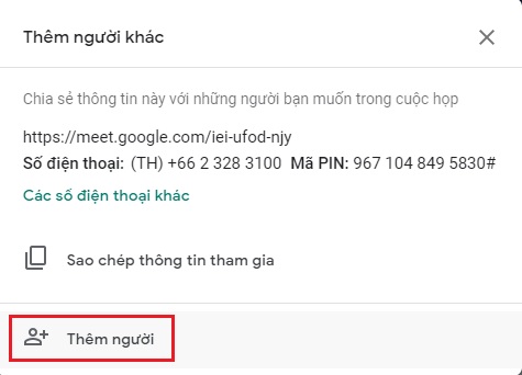 Hoặc bấm vào Thêm người sau đó nhập tên hoặc email để gửi thông tin qua email cho người tham gia.