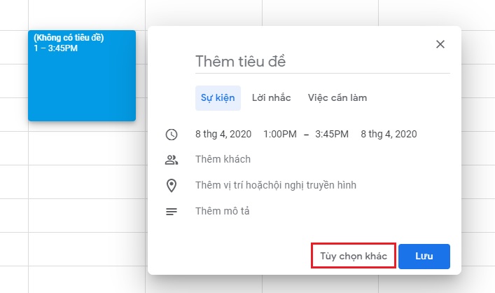 - Bước 2: Bấm chuột và chọn khoản thời gian cần tạo, cửa sổ hiện ra bấm Tùy chọn khác
