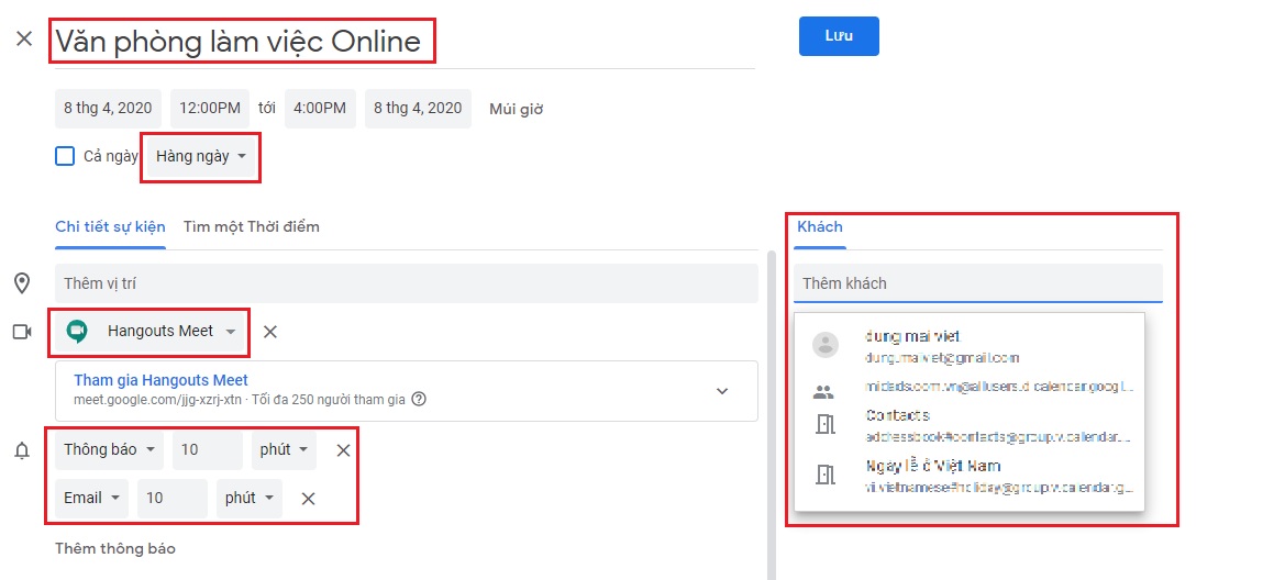 2. Hướng dẫn tạo phòng họp trên Lịch (Calendar)
